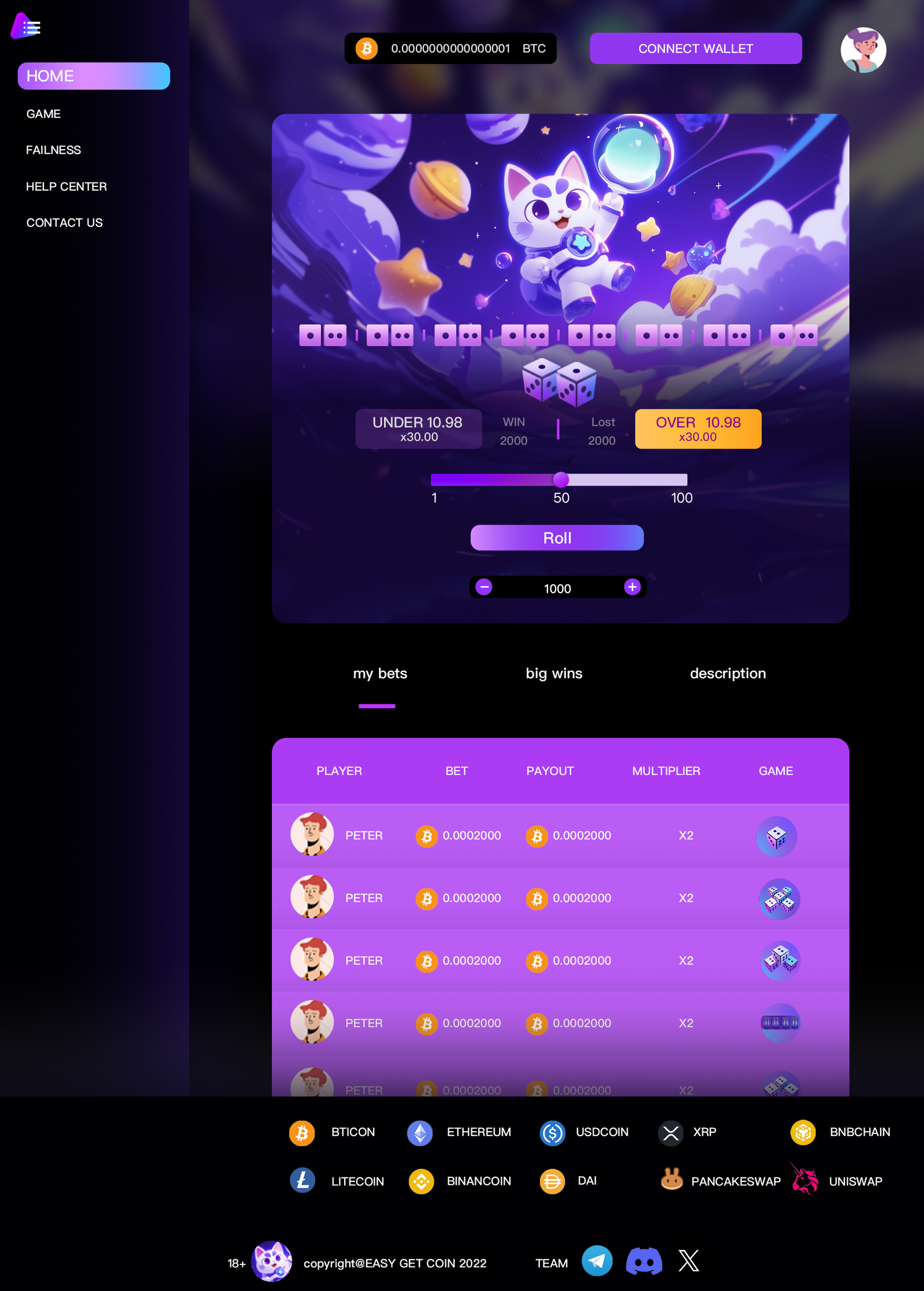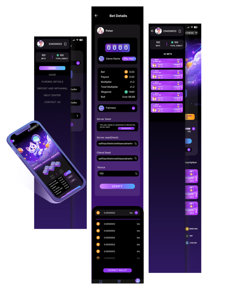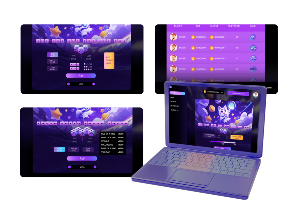 This project is a web-based dice game module I designed for a Web3 startup.