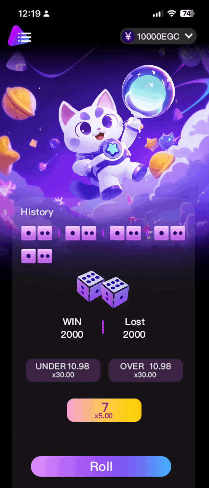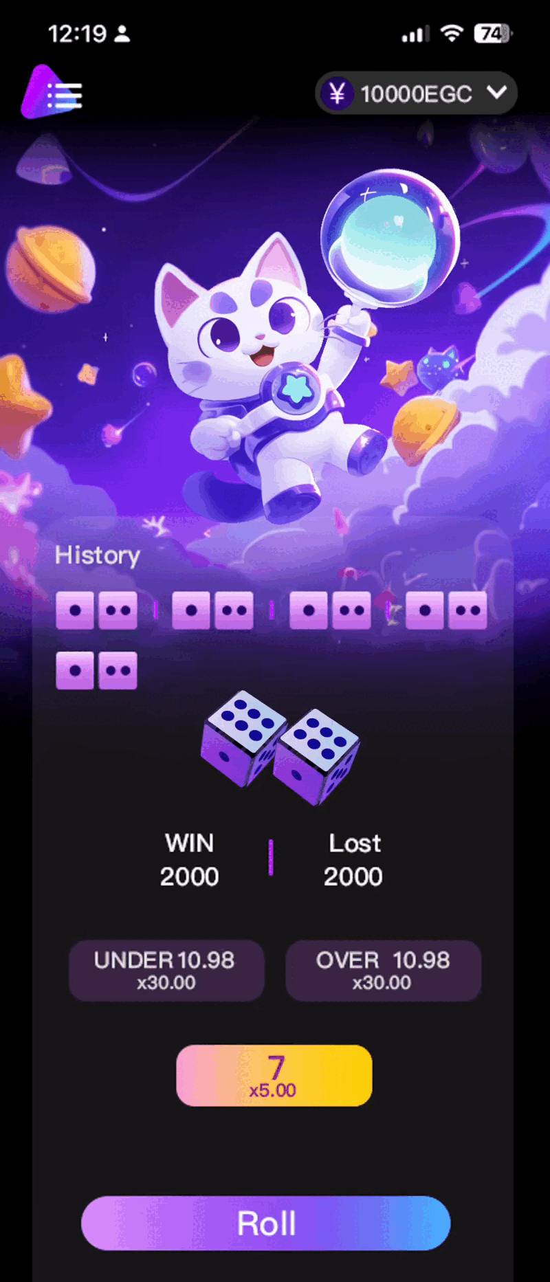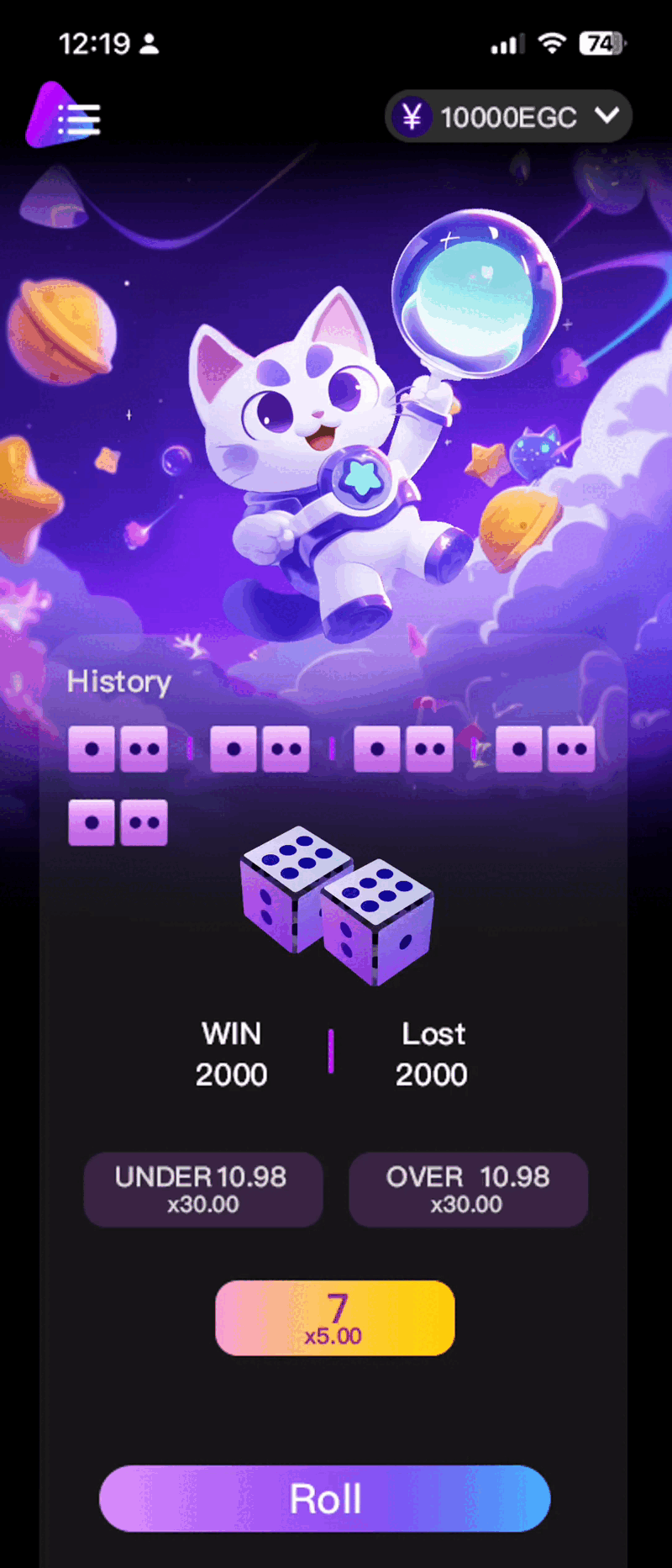 This project is a web-based dice game module I designed for a Web3 startup.