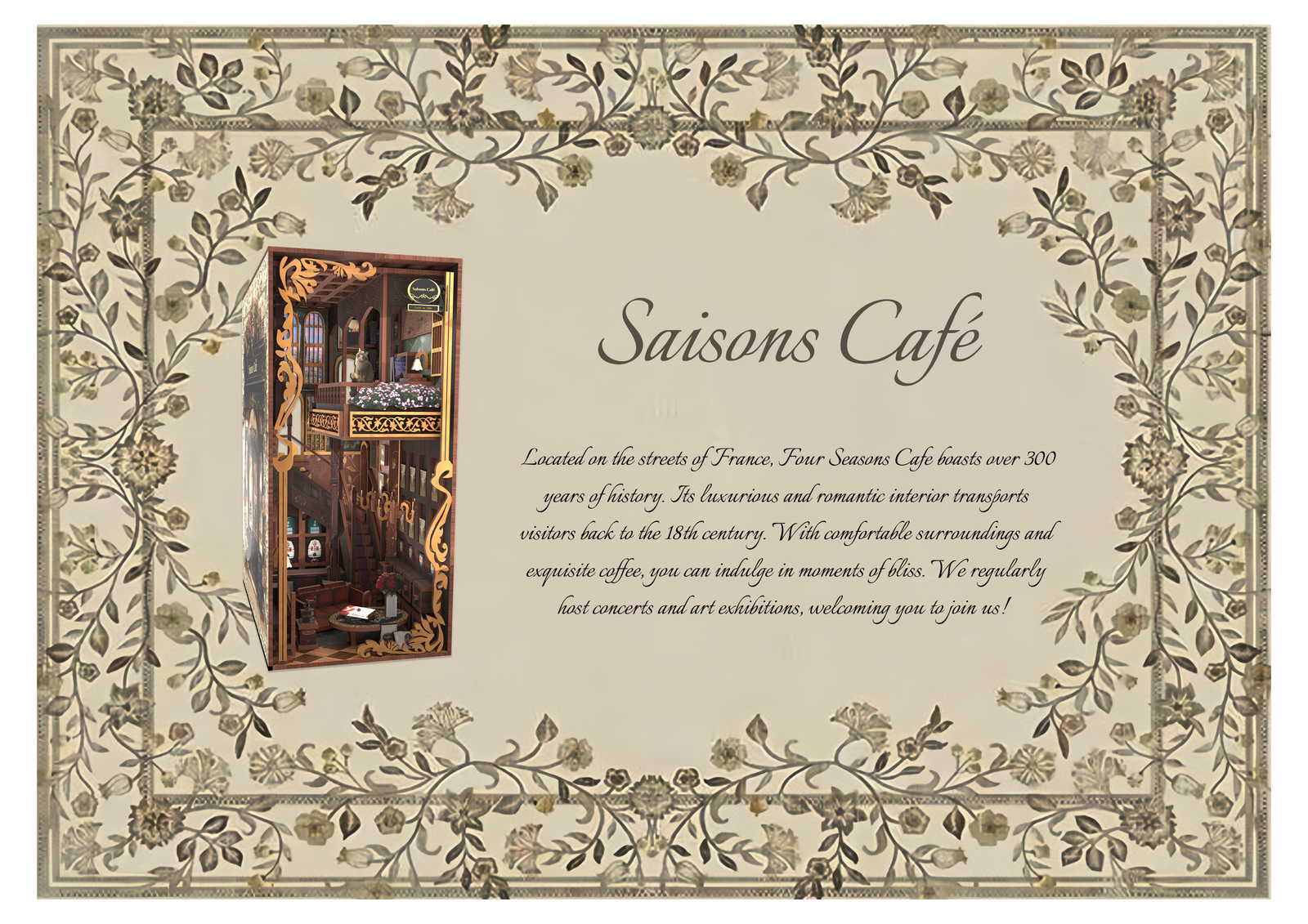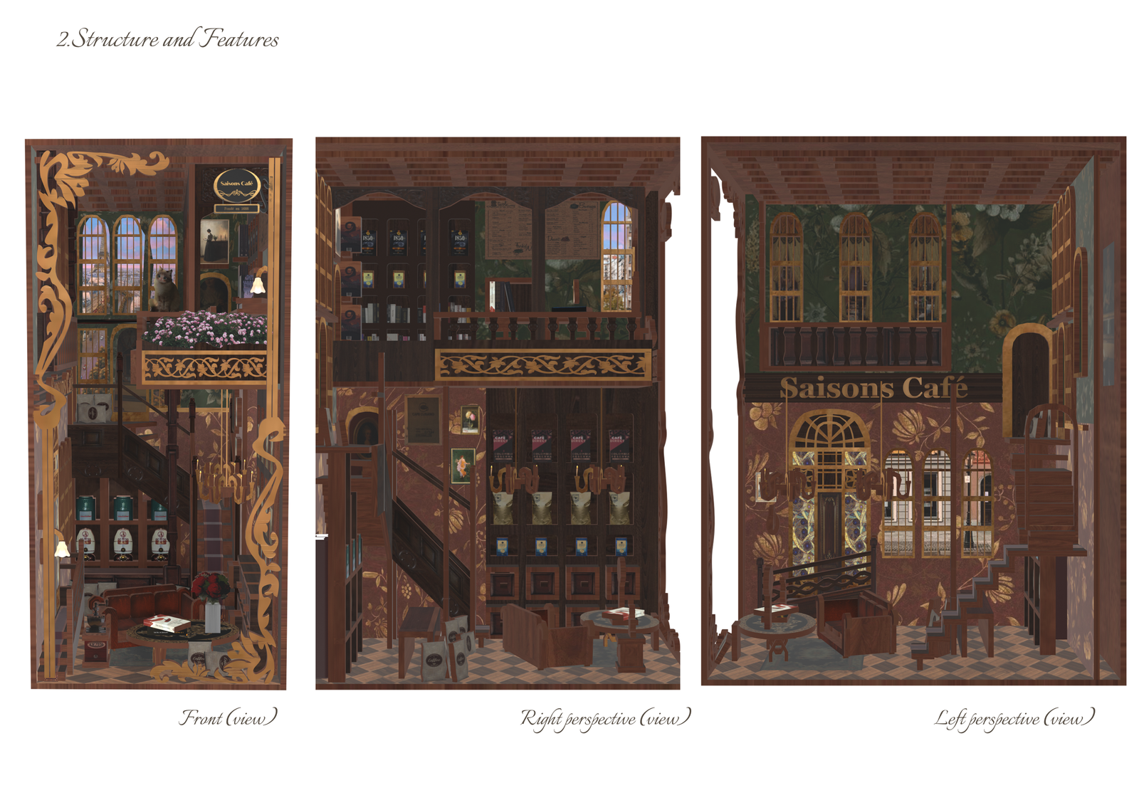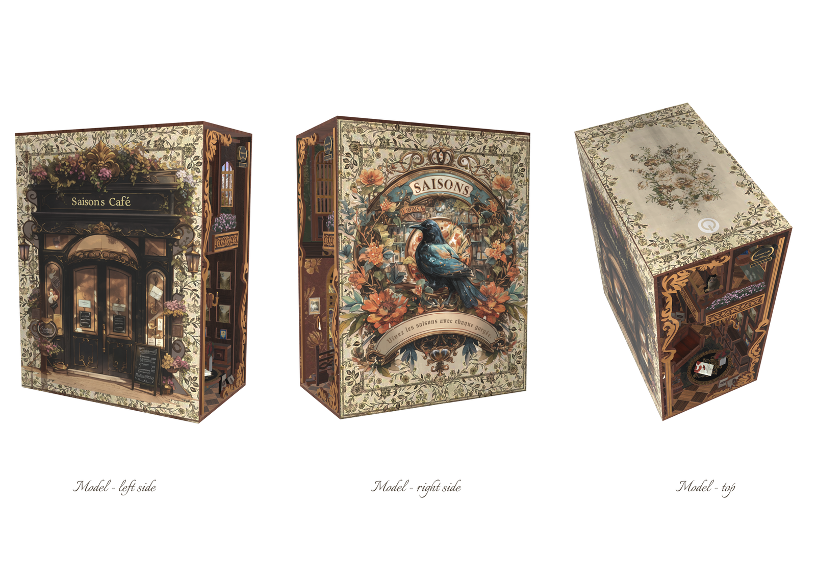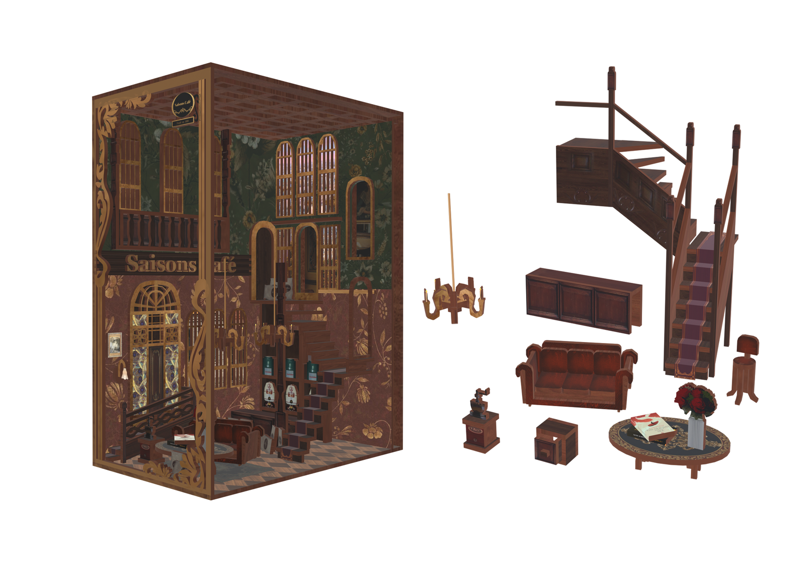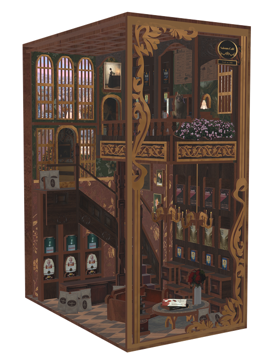 Saisons Café is a bookshelf “booknook” designed for MINICITY.