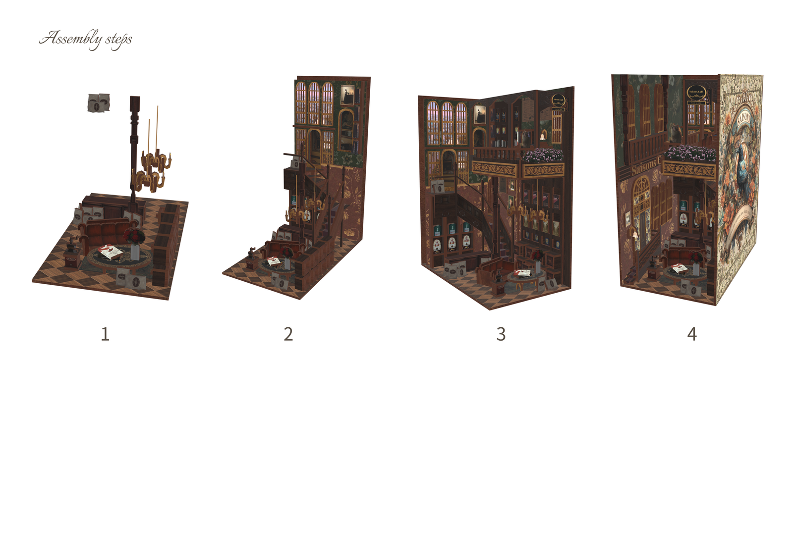 A booknook (also called a bookshelf insert) is a miniature, self-contained diorama that slides between books and turns the gap on your shelf into a window to another world.