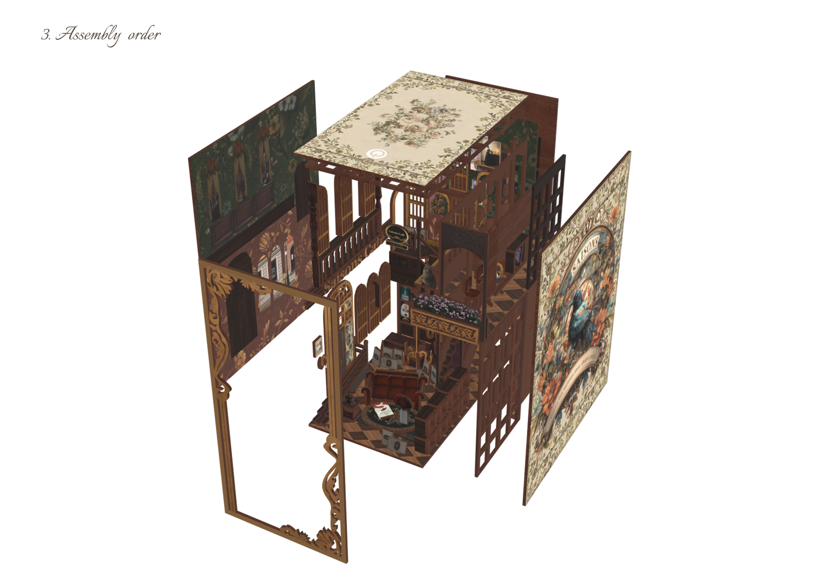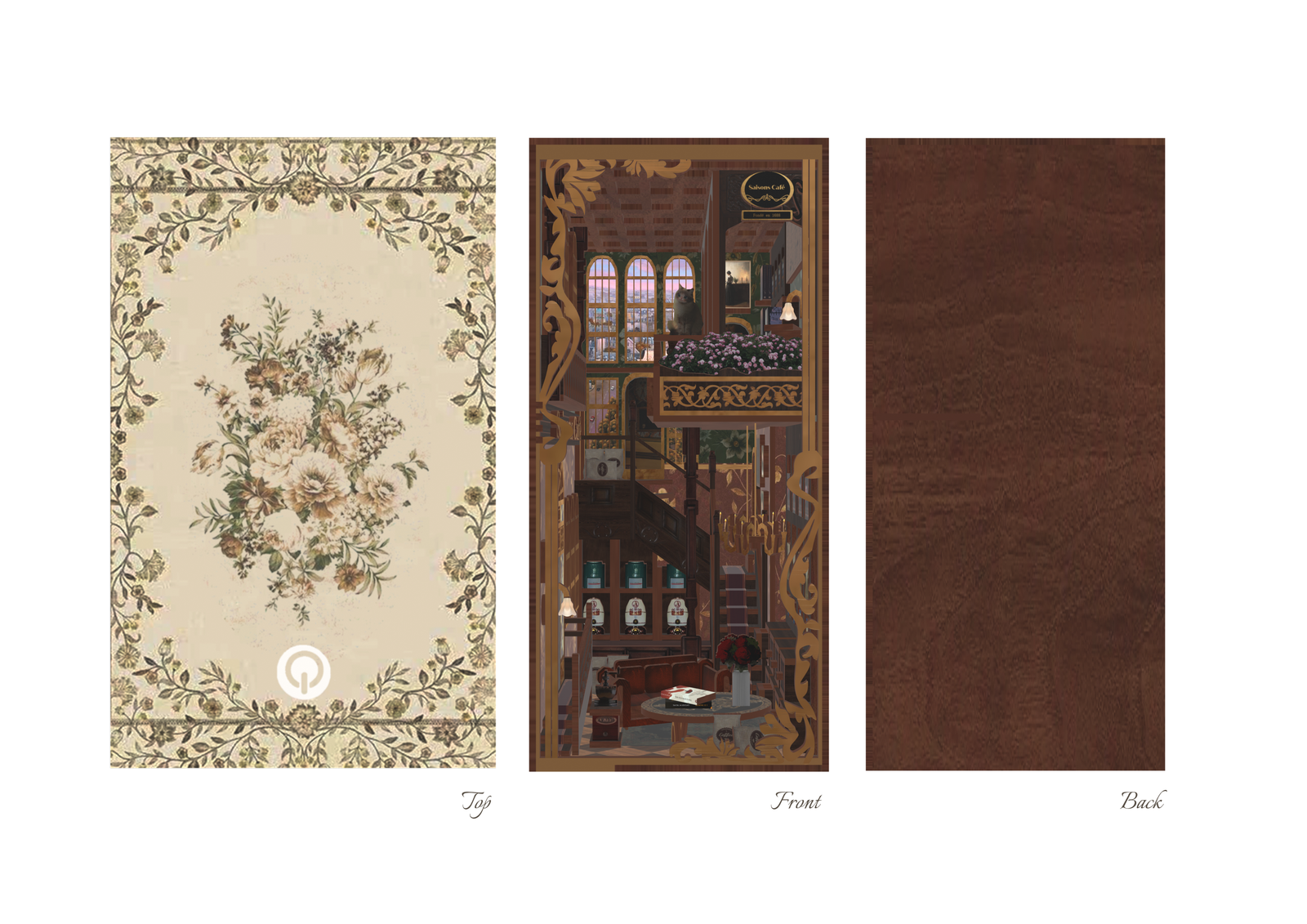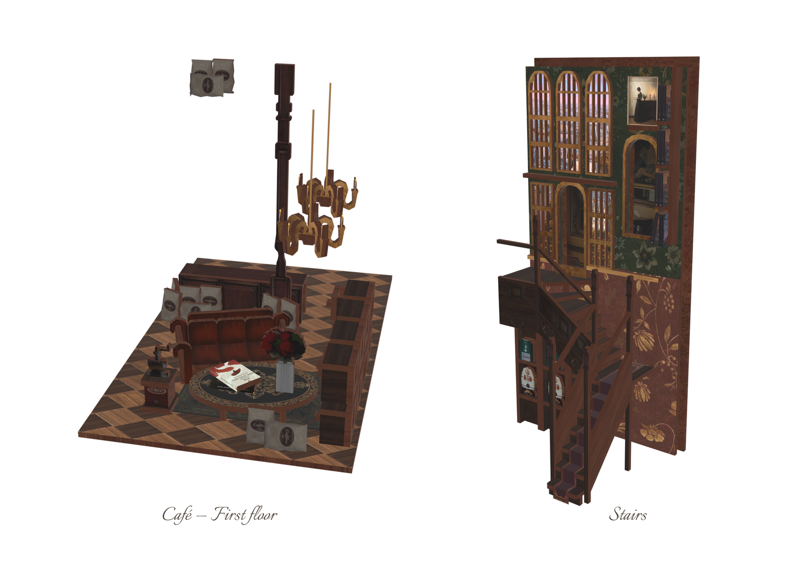 This piece imagines a century-old café: a calm, timeless interior arranged across two levels, with a sunken lower floor that makes the space feel sheltered, cozy, and quietly inviting. Warm sightlines lead the eye upward, creating depth in a compact footprint.