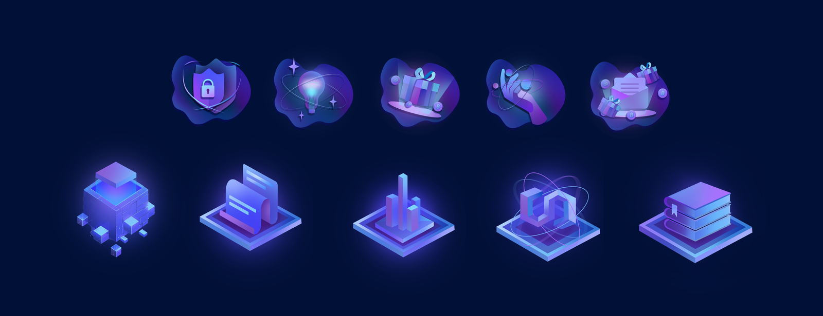 In addition, I designed and illustrated the custom 3D icons myself (not AI-generated), so that the visual language clearly communicates concepts like security, data publishing, analytics, and staking.