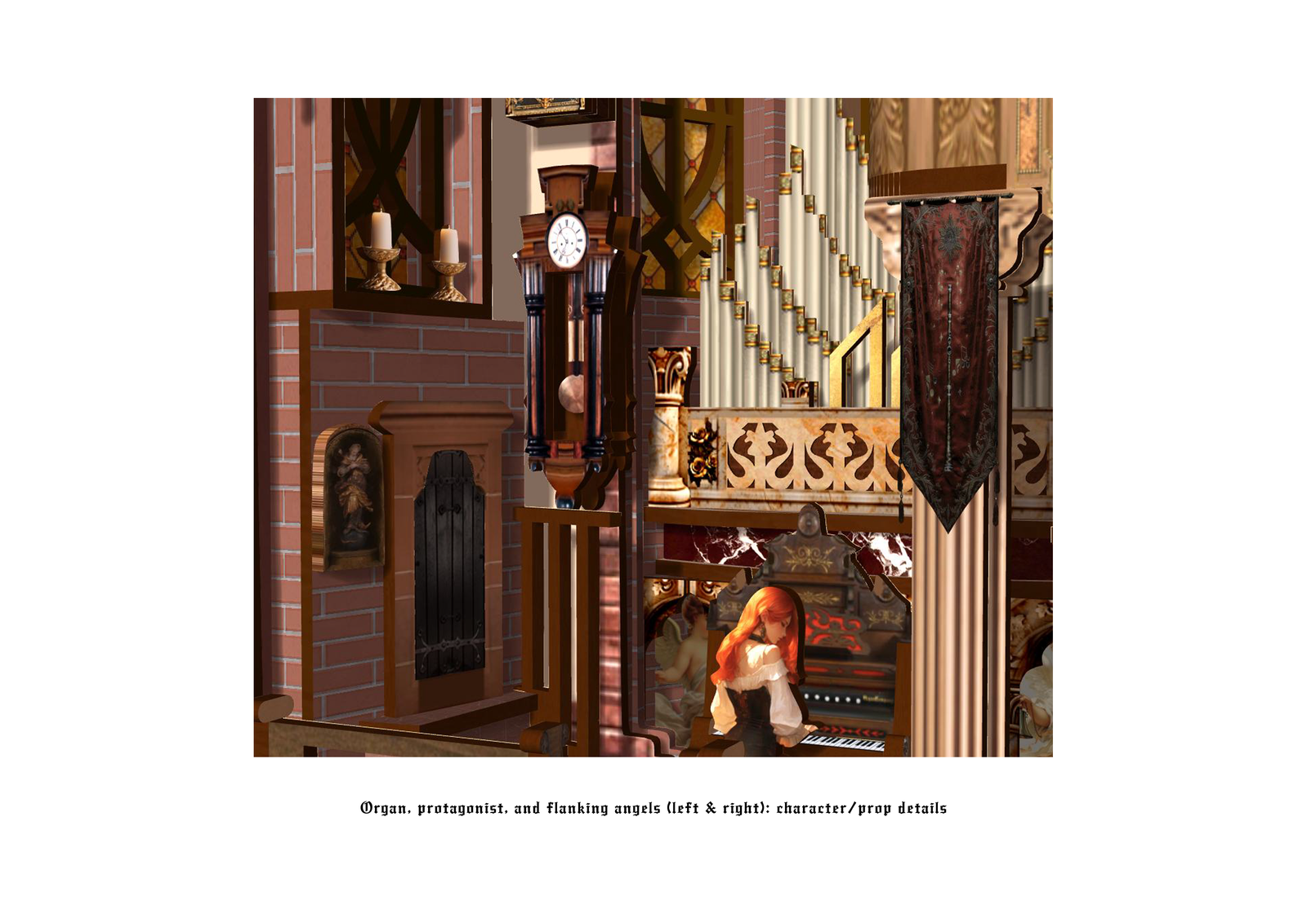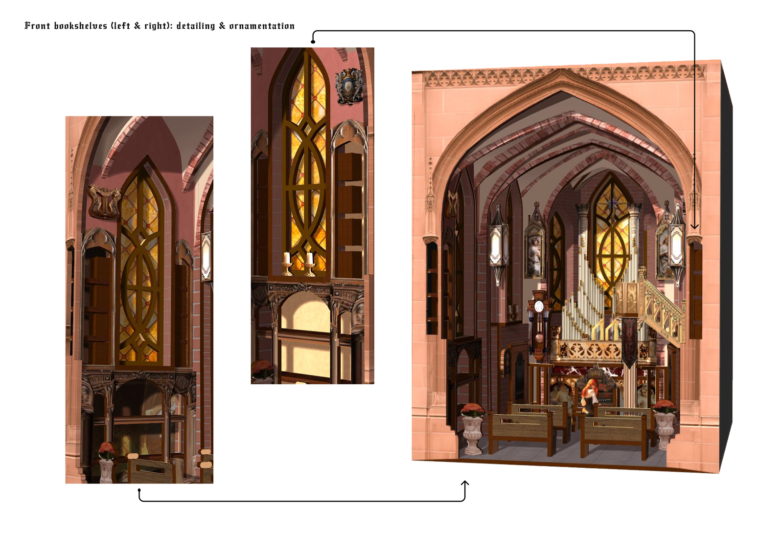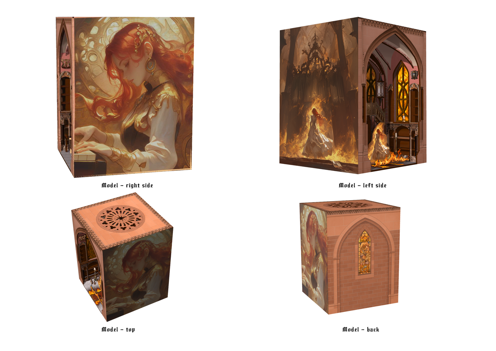 I led the creative and spatial design: worldbuilding/backstory, research on rib-vault structures, forced-perspective layout, material and lighting palette, and 3D modeling/visuals in Rhino & Blender; I also prepared copy and illustrations for presentation. Not in scope: manufacturing cutting sheets, assembly manual, or physical assembly/fit tests. llustrations and most UV maps were generated with AI and then refined by me.